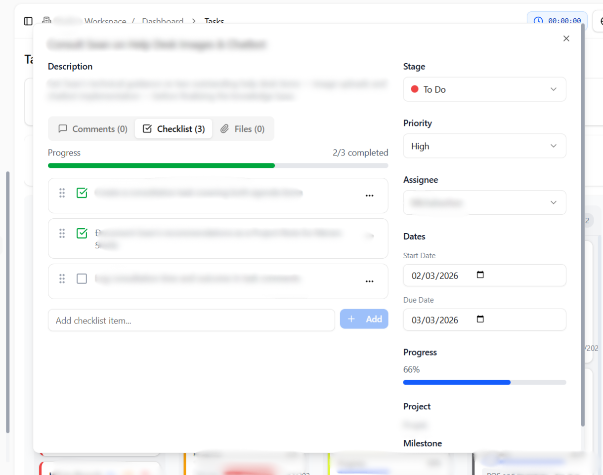 Task-level collaboration ensures that discussions, updates, and files remain directly connected to the relevant work item. This prevents scattered communication and keeps all information centralized within the task.