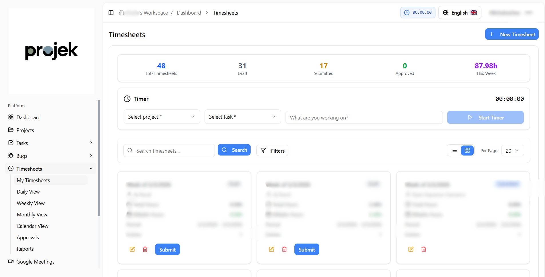 Accurate time logging ensures reliable productivity tracking and supports effective project and financial management within Projek.